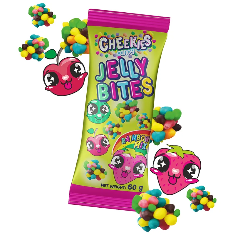 Combining a crunchy sugar coating with a soft jelly centre, this product offers a unique take on conventional gummy sweets. Cheekies Jelly Bites are available in the flavours of grape, strawberry, watermelon, lemon, forest fruit and peach and contain no preservatives.