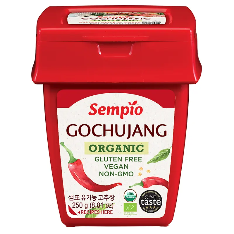 The fermented Korean chili paste is made from sun-dried red peppers and rice. Produced using traditional fermentation methods, the paste delivers a balanced spicy and umami flavour and is gluten-free.