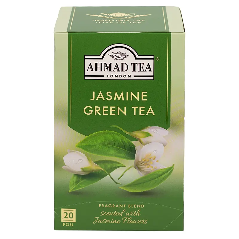 The tea is made from air-dried Chinese green teas sourced from the Golden Triangle region. The leaves are traditionally scented with jasmine flowers for a balanced floral profile.