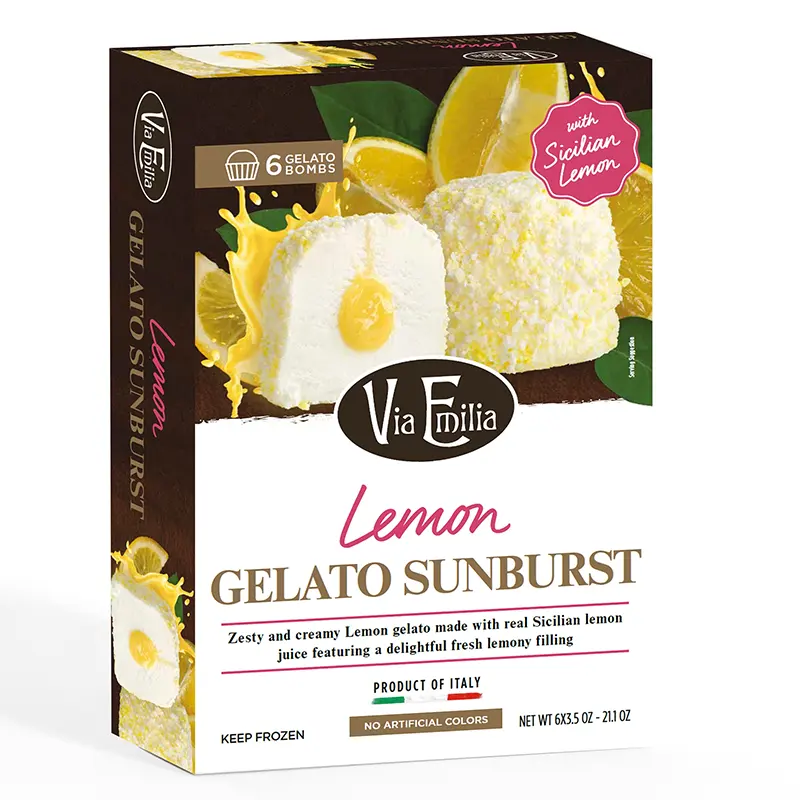 The gelato dessert features a liquid lemon centre made with Sicilian lemon juice and a meringue-coated exterior.